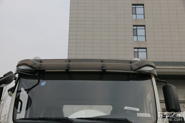 整体外观非常具有辨识度,顶部带有气喇叭,并且标配黑色半透明的遮阳板,可以减少行驶过程中阳光对于驾驶员的干扰。示廓灯布置在了遮阳板的两端,实用性强造型设计也不赖。