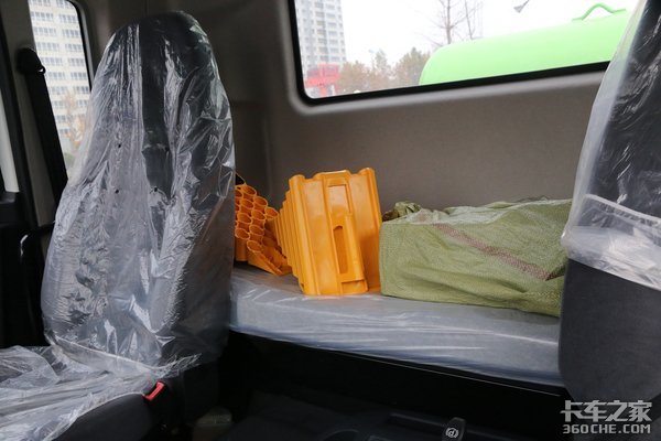 卧铺宽度目测不够宽,但是考虑到混凝土搅拌车的实际使用工况,这样的窄卧铺基本上也可以满足卡友们短暂的休息需求。