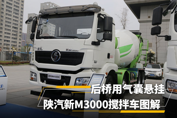 比较独特的地方在于这款新M3000搅拌车后桥采用的是气囊悬挂,根据法规对于气囊悬挂的政策,比普通前后桥都采用钢板弹簧的车型可以多装1吨货。