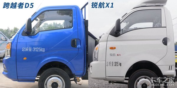 实拍的锐航X1总质量约为3吨(已知最大总质量为4.24吨),整车重量为1.89吨。因此跨越者D5在自重方面较轻,锐航X1在总质量方面有优势。