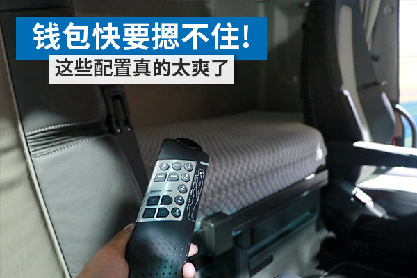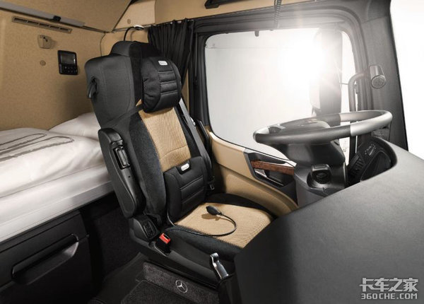 这款奔驰卡车的多功能按摩座椅,足以让人垂涎三尺。这奢华的面料、高端的设计,单是从图上就感受到了这款座椅的不简单。尤其是两侧黑色绒毛般的面料和棕色的座椅,搭配出了高大上的效果。头枕、腰垫这大小,一看就很有分量,很好照顾到了卡友开车时容易引起酸疼部位。