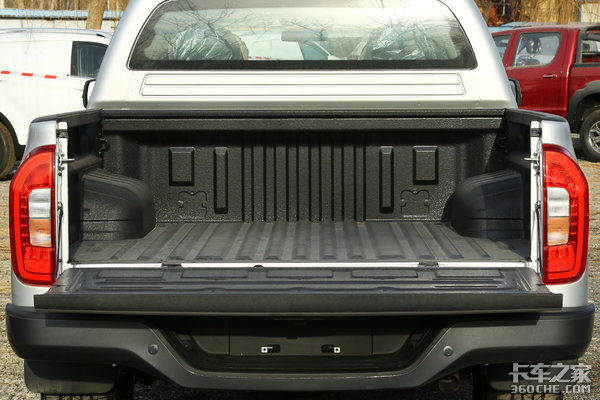 拓陆者驭途9精英型的尾部造型相对简单,旗舰型的货箱后挡板上加入了黑色LOGO设计。