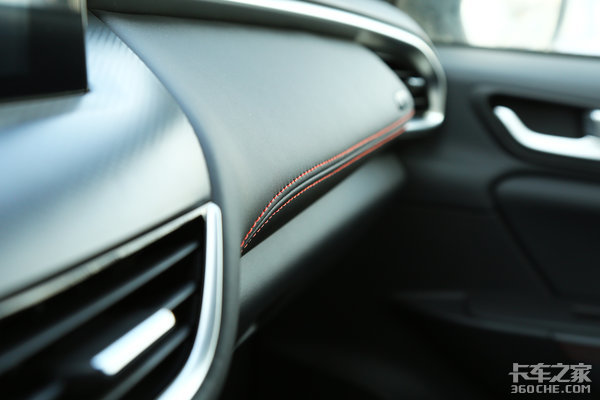 内饰采用了大量红色缝线+皮革面料覆盖的设计,有效的提升了车内的豪华感,也为用户带来了更加高端的内饰质感。