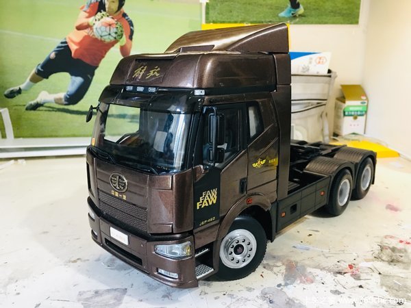 这款J6P领航版模型漆面使用了与实车一样的棕色,解放官方称为“咖啡金”。这个颜色在过往的中国卡车业界里面是几乎没出现过的,改变了以往国产卡车颜色过于单调且没有深度和美感的情况。
