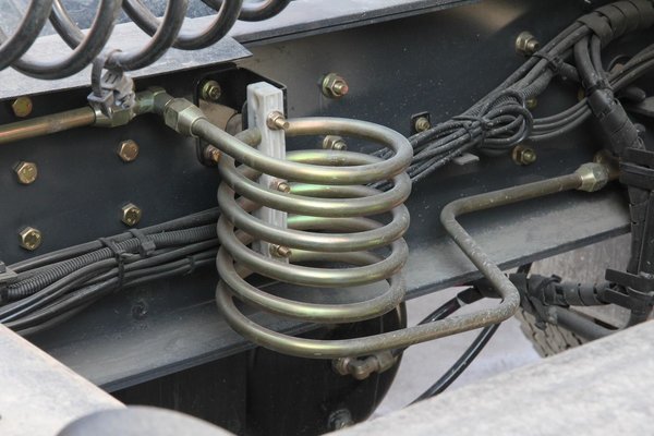 除了上面那些为围绕发动机、变速器的散热系统外,还有为压缩空气散热的气路螺旋管。