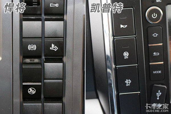 国六柴油发动机后处理更加复杂,必备的DPF,还需要进行人为操作,因此两款车驾驶室内都增加了DPF开关。用车前切记认真阅读购车手册,避免发生DPF损坏等问题。关于DPF操作我们也做过介绍,可以阅读文章:《150马力国六发动机 重汽科技版轻卡图解》。