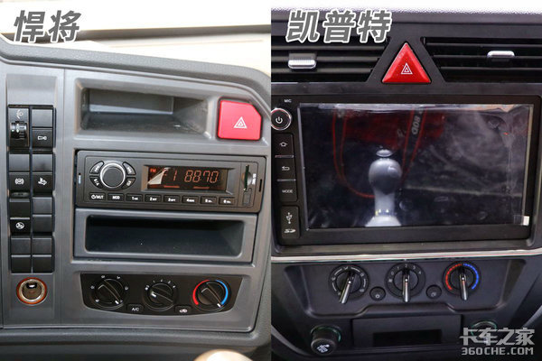 两款车的驾驶室都有不小的亮点。悍将驾驶室宽度达到2080mm,同时得益于较高的空间利用率,让人有小中卡的错觉。凯普特的全新平台驾驶室,除了空间更大以外,功能布局和整体做工也比上一代车型有明显提升。