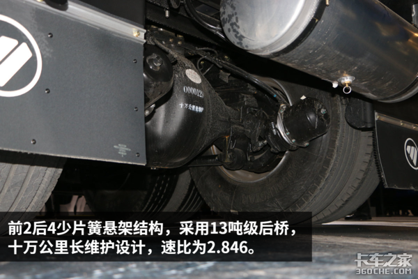 根据后桥速比2.846,轮胎规格12R22.5,变速箱传动比最高档为1时。通过卡车之家车速计算器可算出,车辆在1200-1300转经济区间时,时速为83-90km/h,适合公路高效运输。