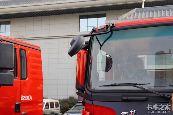 一体式后视镜搭配两块照地镜是基本配置,亮点在于后视镜带有红黑套色的外壳,既好看又实用,同样可以减轻行驶时的风阻,更省油也更省钱。在货运市场不景气时更需要精打细算,小小的细节也可以帮助我们降低运营成本。