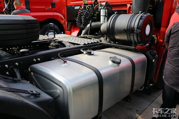 车辆右侧布置了尿素罐和油箱,空滤则布置在了尿素罐上面,很好的利用了底盘空间,而且和尿素罐互不影响。