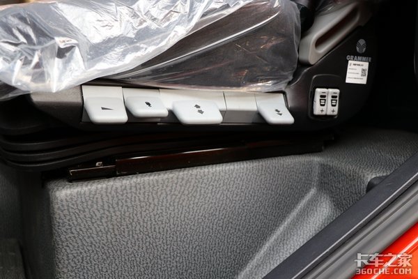 主驾驶配的是国际大牌格拉默的气囊减震座椅,并且带有非常多的调节功能,可以根据自己的喜好随意调节。另外,驾驶室采用的是四点气囊空气减震,两两加持减震效果更好,舒适性更高。