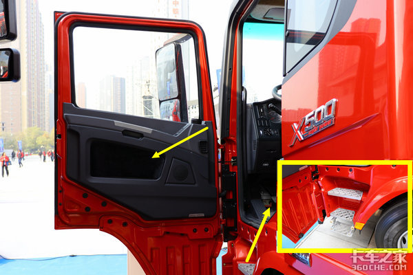 驾驶室门开近90度,三层镂空式蹬车踏板,考虑到车辆的通过性,最下面一层为可活动式。但是车门上并没有设计储物盒,低顶驾驶室顶部没有大型储物盒,如果车门也能有效利用的话,可以增加车辆的储物空间。