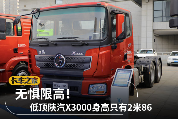 为了帮大家解决这一困扰,很多主机厂都推出了“矮个子版”牵引车,今天就为大家介绍一款陕汽X3000低顶版6x4牵引车,它的身高只有2米86。
