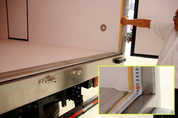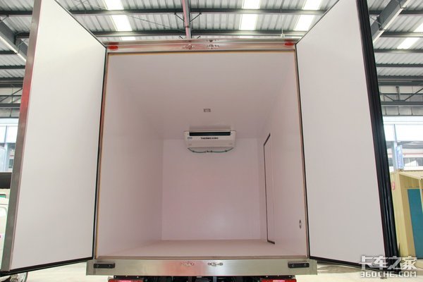 根据现场实测,冷厢内部实际可利用长度为4米1左右,符合标准的轻卡货厢尺寸。