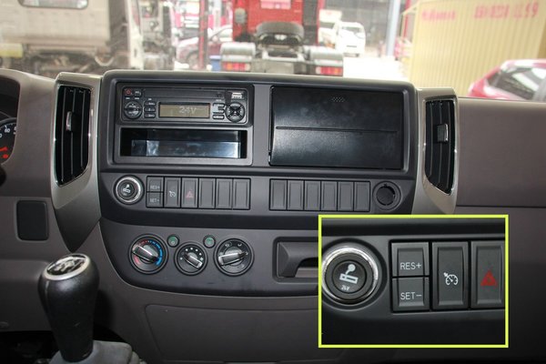 在仪表盘上面的是温度控制器,根据控制器开关机来控制货厢内实时温度,且可以看到该温控器功能较多,数据化实时显示厢内温度,以便掌控调整。