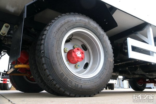 轮胎来自三角提供,规格为7.00R16。从这个位置还能看到,经典的德纳红桥上配备了稳定杆,可以提高行驶质量,减少侧倾。