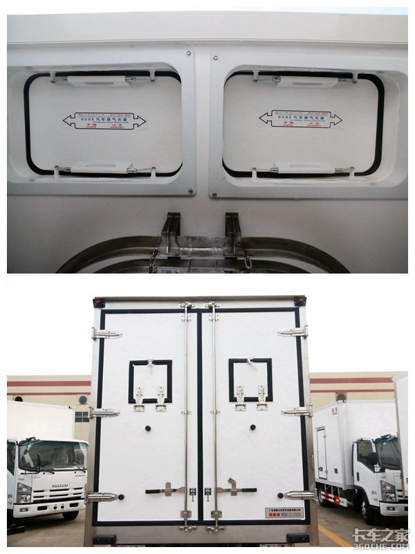 车厢顶部前侧还配置通风窗,兼顾逃生功能,尾门安装两个通风窗,方便应急使用。