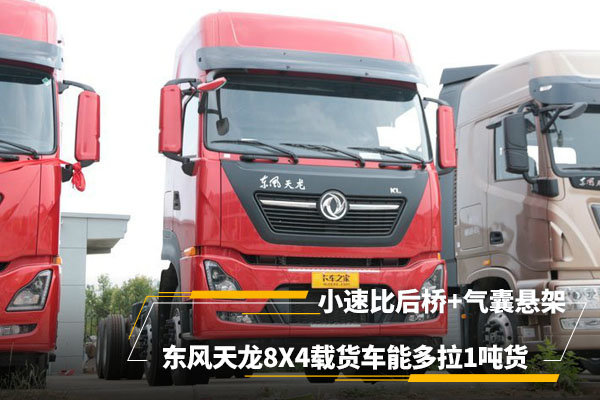 接下来为卡友们介绍的这款东风天龙KL 8X4载货车型,其所具有的轻量化、小速比车桥、直接挡变速器以及大马力发动机的综合配置优势一定会让大家心动不已。