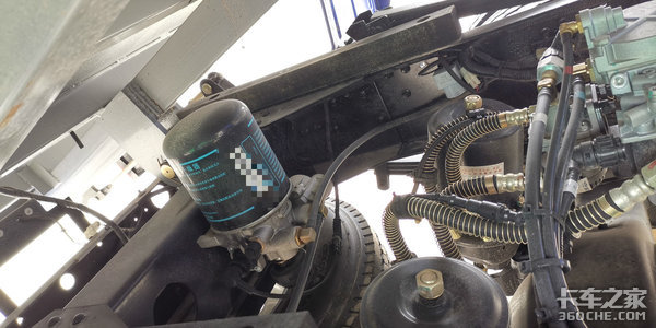 一般其他品牌同级别自卸车,会将后桥后方车架中间位置布置为液压油储存罐的安装位置。但由于下方备胎以及ABS线路的干扰,唐骏T1将此位置布置为气瓶干燥器的位置。干燥器通常更换频率不高,不影响日常使用。