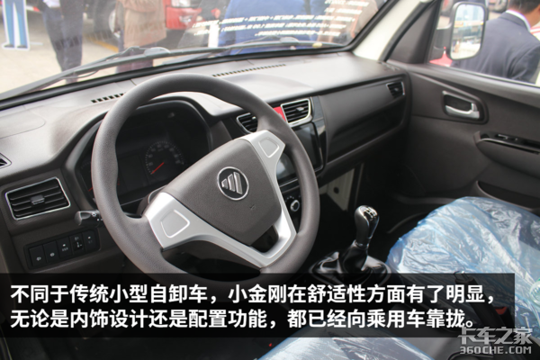 福田小金刚在内饰上已经全面向轿车化靠拢,舒适性和功能性等多方面都有了极大提升。这样的内饰在小自卸市场当中,可以说是非常精致了。