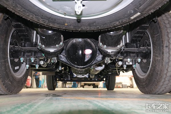 后桥为2.5吨级后桥,速比为5.125,搭配了9+6片板簧,大速比可以保证在起步时有充足的动力输出,并且后桥带有制动间隙自动调整装置。