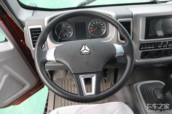 侧面线条依然是熟悉的味道,“豪沃系列”特有的拉花,另外这款车的上装虽然是3米3的小货箱,但是总质量4495kg,整备质量为2135kg,额定载质量和和普通的4米2轻卡相差无几。