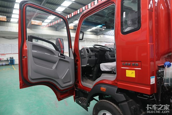 这款车驾驶室车门打开之后近90度,搭配A柱上的扶手上下车很方便,而且还利用车门板上的空间,布置了一个开放式储物盒,可以收纳一部分随车物品。
