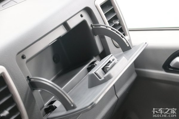 受驾驶室尺寸的影响,副驾驶前方的手套箱尺寸比较小一些,大家可以把平时行车必备的各种证件、文件等放置在这里,寻找也比较方便。