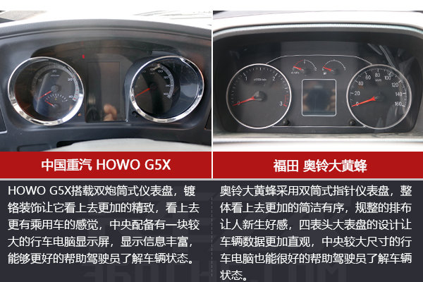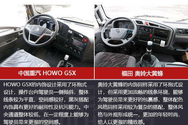 通过三方面的对比,我们可以看出两款车均为较为优秀的车型。在外观方面,奥铃大黄蜂更加的年轻时尚,很符合当下年轻卡友的审美标准;而HOWO G5X整体方正的外观更具力量感,魁梧的身形让它看上去不会过时。内饰方面大黄蜂更具设计感,在实用性以及舒适性上达到了很好的平衡;而G5X整体更加倾向于实用性,设计感稍有欠缺。动力性上两款车相差不大,承载能力均能满足当下城配快运等主流场景。