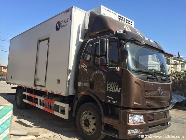 这款J6L系列车型主要用于方圆200km的猪肉运输业务,考虑到实际使用需要车主并没有选择生活空间更为舒适的高顶双卧铺驾驶室,而是采用了这款平顶排半驾驶室。