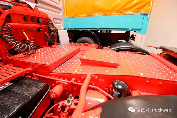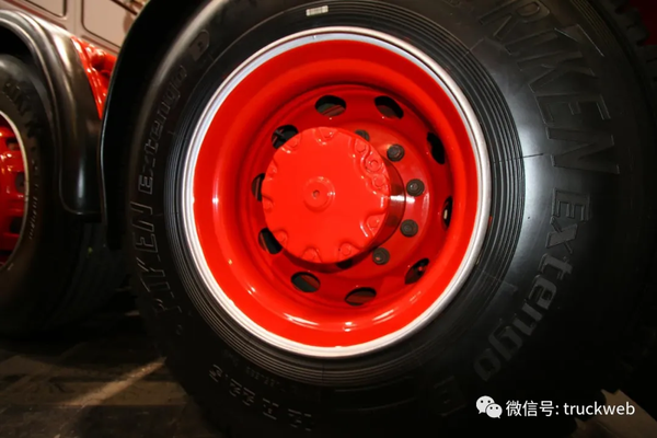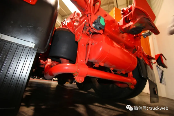 红色的大梁漆是7、80年代欧洲卡车的保留节目,尤其是德国品牌,暗红色的大梁漆简直成了那个年代的时代特征。这辆20.361除了保留了红色的大梁漆,更是将驾驶室后部的工作平台也漆成了红色。