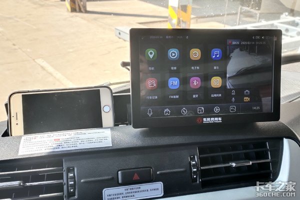 另外,这款车还原创标配一个多媒体大屏。它除了具有导航功能之外,还自带行车记录仪功能,并且内置东风车联网系统,可以和手机互联,查询车辆的油耗等信息、获取驾驶行为分析,帮助自己优化操作,降低油耗。另外,在导航大屏旁边还有一个手机支架,使用手机导航也非常方便。
