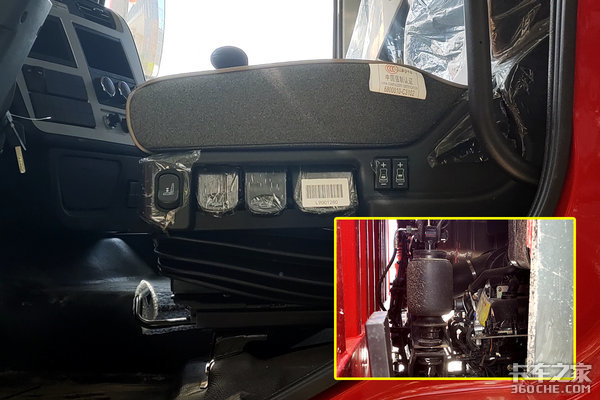 其实天龙KL的驾驶室原本就在舒适性上表现得非常不错了,气囊座椅、四点气囊悬浮都是中高端牵引车级别的配置。另外,和其它车型不同,天龙KL的驾驶室翻转按钮位于前面板内部,这样既不用担心忘翻前面板导致驾驶室损伤,操作起来还非常便利。
