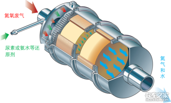 SCR系统主要负责除去尾气当中已经生成的氮氧化物,它的工作原理相对复杂一些,不仅需要尿素给料装置配合,还要和行车电脑ECU随时沟通车辆状况决定给料量,是最令卡友头疼的东西。