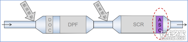 在ASC系统当中,SCR反应中多余的氨气会与氧气继续反应,生成氮氧化物,同时将生成的氮氧化物与多余氨气继续反应,进而生成无害的氮气排出。是一个取之于SCR,用之于SCR的装置,可以说将废物利用的理念发挥到了极致。