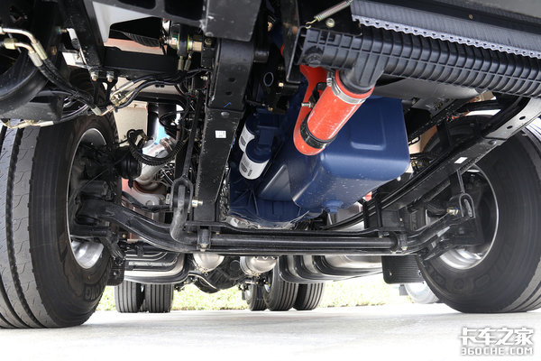 在X3000车型上面,后处理系统放在驾驶室的左侧,而油箱布置在右侧,在陕汽X5000车型上面,他们的位置进行了对调。经请教现场的工程师了解,这样的布局是为了更好的迎合国六产品,后处理系统布置在右侧,能够缩短发动机到后处理之间的排气管长度,更好的实现发动机的热管理。