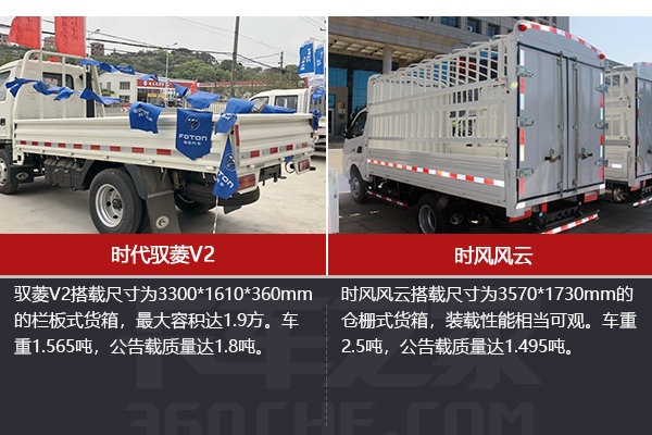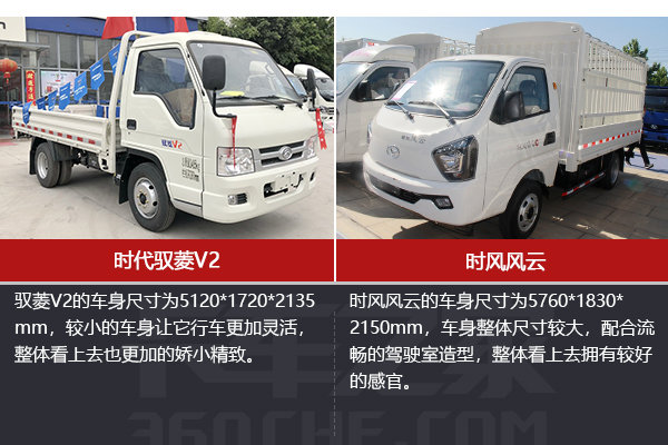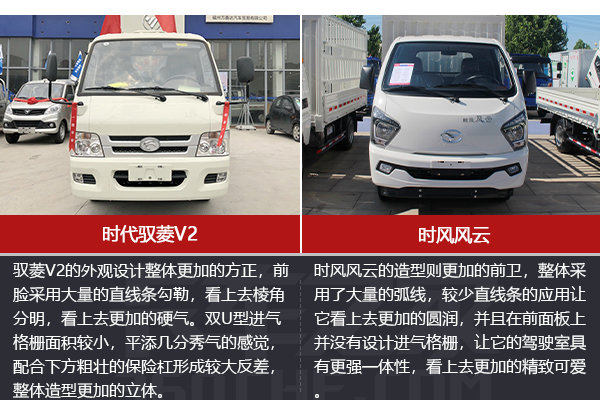 通过以上三方面的对比,我们能够看出两者在整体取向上的区别。在外观方面,驭菱V2外观更加的方正硬气,更加传统的外观设计让它更容易获得认可;而时风风云外观设计更加的年轻时尚,圆润的外观更讨年轻人的欢心。在内饰方面,驭菱V2更注重实用性,虽然在享受型配置上较为欠缺,但储物空间更加多样,时风风云的内饰设计则向乘用车靠拢,更加具有科技感。承载能力方面驭菱更具优势,更强的底盘配置以及更高的额定载质量都是它的优势所在。