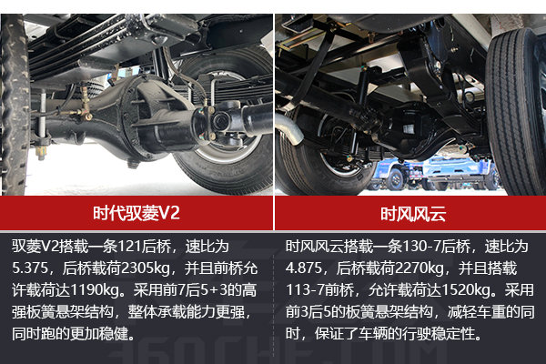从二者底盘配置上我们可以看出,驭菱采用低扭更强的发动机+大速比后桥+多片簧的底盘结构,重载能力更加可观,并且更低的车重能够让它合规装载更多的货物;而风云在底盘配置上要稍逊一筹,不过更大马力的发动机让它的驾驶性值得期待,并且配备的仓栅式货箱让它拥有更强的装载能力,但额定载重较小依旧是它的缺陷所在。