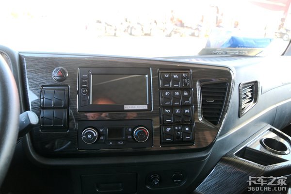 中控部分的控制模块相对比较集中,液晶屏、液晶显示的空调工作状态,包括中控包围使用的木质纹路,有意在提升车辆内饰的高级感。另外,出风口前布置杯架这个人性化设计在这台JH6上依然得以沿用。