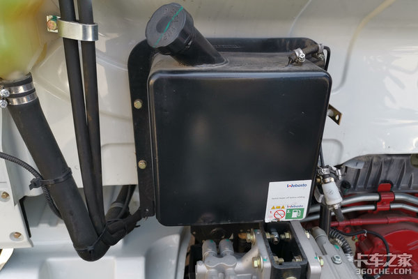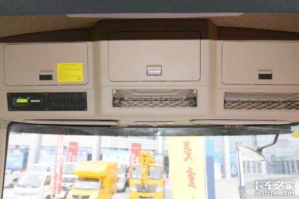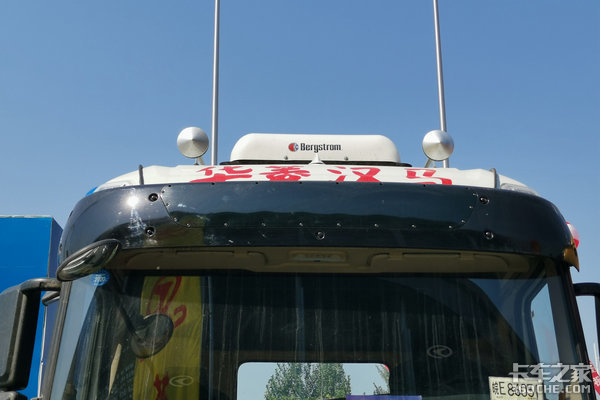 喇叭被安装在驾驶室顶部,这样的设计从感观上比较刺激,看上去比较霸气。驾驶室顶部的空调外机表明这台车装配了驻车空调,而且还是我们熟悉的博格思众。在炎热的夏天,可以直接打开驻车空调降温,就不用再启动发动机,既节省了燃油,可以提高舒适性。同时还配有驻车加热系统,冬天也不用担心挨冻了。