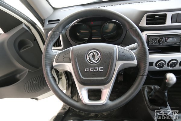 方向盘的设计也采用的是乘用车中常见的设计,两侧采用的是凹槽式设计,可以增加摩擦力,防止手滑。另外,可以看到方向盘两边预留了多功能按键的设计,应该是可以加钱选装多功能方向盘的。