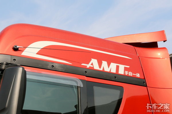 驾驶室顶部两侧标注了“AMT手自一体”表明了这款车是AMT车型,因为这款车是四季款车型,所以车窗上也看到了雨眉这种南方包里才有的配置。