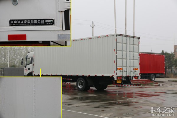 上装部分,这款实拍车采用的是河南冰洋汽车有限公司生产的货箱,厢板之间采用机器人焊接,焊缝非常工整;顶部瓦楞还可以选择一次性冲压瓦楞顶,不容易开焊漏水,非常耐用。