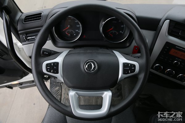 和这块屏幕相配合,东风还给这款车标配了多功能方向盘,开车时不用分心就可以轻松地控制这些娱乐功能。当然,它还具备定速巡航功能,对于常跑高速的快递车来说,这项功能也非常实用。