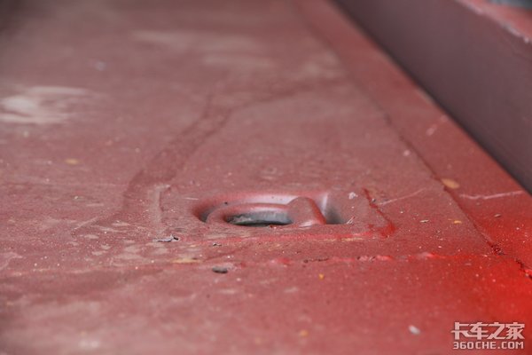 底板部分,这款车还可以选装绳扣,当箱内货物不满时,它可以帮助固定货物,防止货物倾倒造成的损坏。