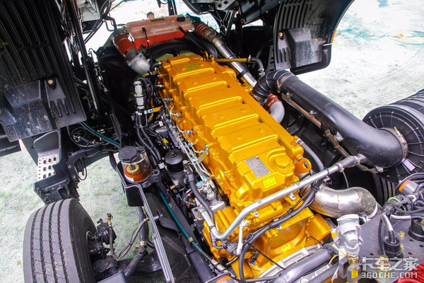 这款600马力车型搭载玉柴6K1360-60发动机,发动机排量13升,功率为600马力,发动机在950转-1400转时可以爆发最大2600牛米扭矩,采用DOC+DPF+SCR技术路线实现国六排放标准。
