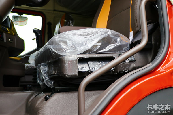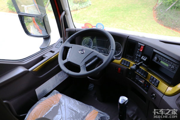 主色调为深色的驾驶室配色,让这辆车在平时使用的时候更加耐脏一些。中控台、座椅、顶部的储物格等区域分别配以金色和橙色的颜色搭配,又让车辆内饰不会显得那么死板。金色以及橙色的颜色搭配,也是乘龙19款升级的一大亮点。