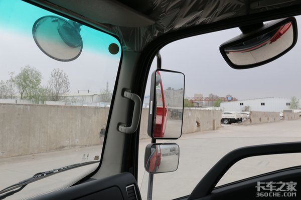 驾驶室顶部带有示廓灯,夜晚行车可以更好的提醒其他道路参与者。后视镜部分采用的是分体式外摆镜和两块补盲镜的设计,而且还可以选装除霜加热的功能。