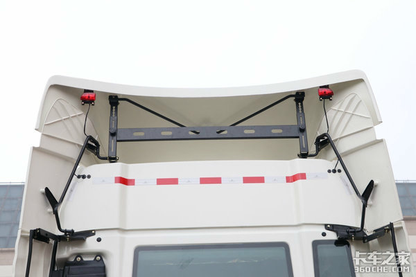 从功能性上看豪沃TX驾驶室能胜任中长途运输任务,侧面导流罩与顶部导流罩配备齐全,适配箱式挂车也无压力,顶部导流罩还具备高度调节功能。