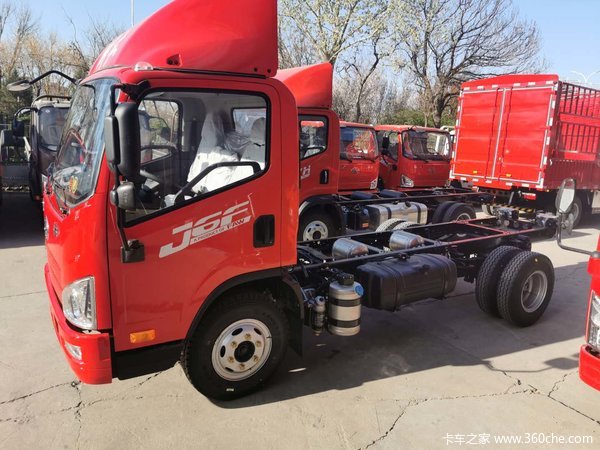 此外,升级的J6F在底盘方面也有不少的优化,车架、板簧等方面进行了加强,满足不同用户的个性化改装需求。其次,J6F还加大了储气罐,制动响应和制动效果更好,针对山区用户,还预留了1.2米的淋水箱安装位置和气路接头,方便后期改装。